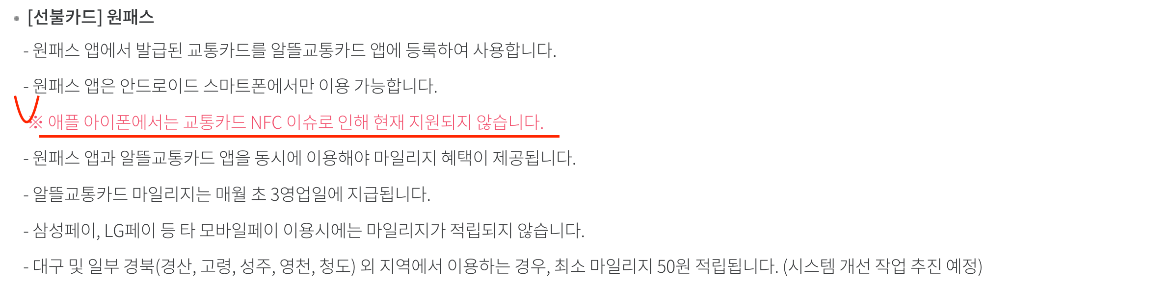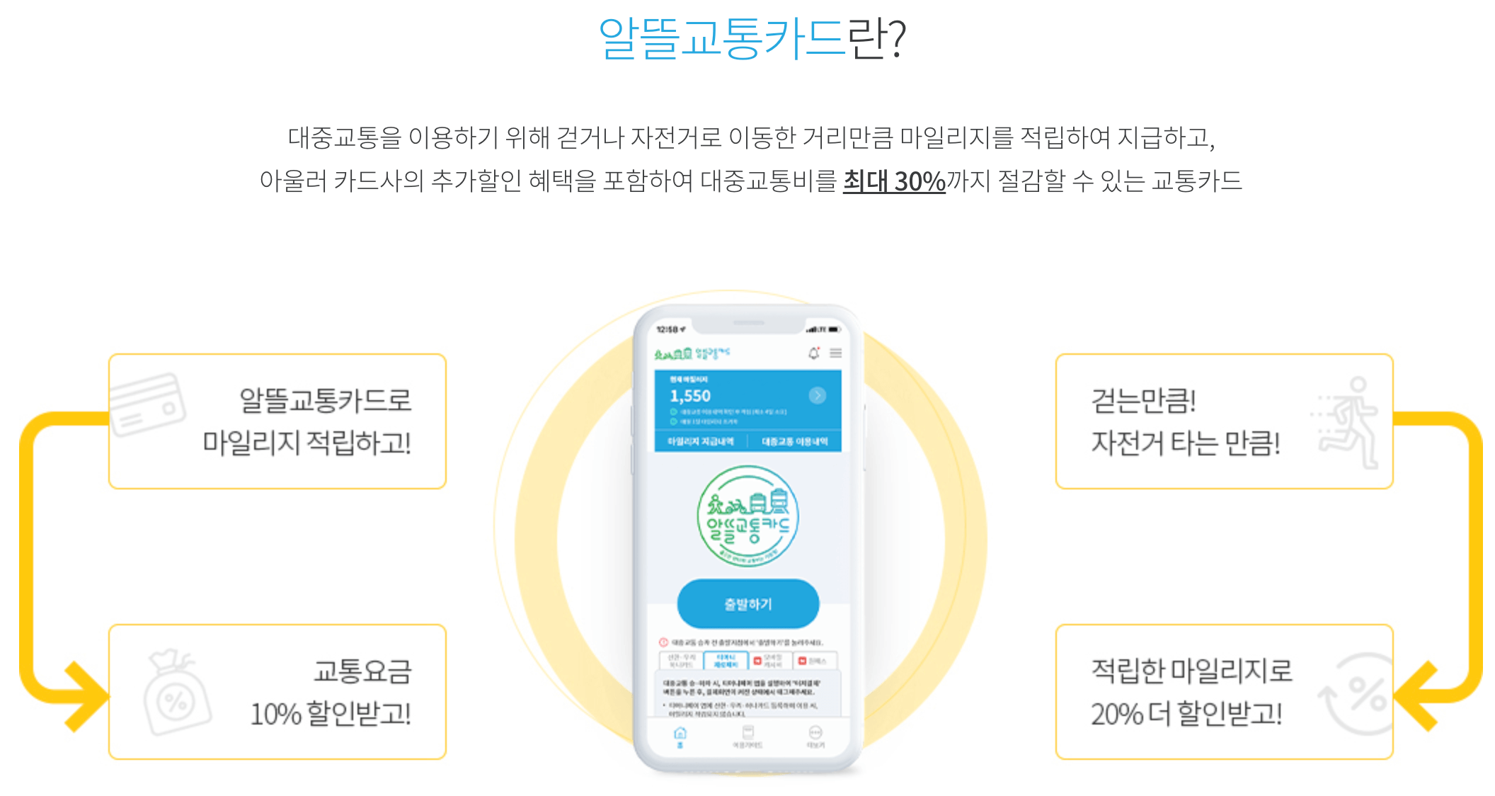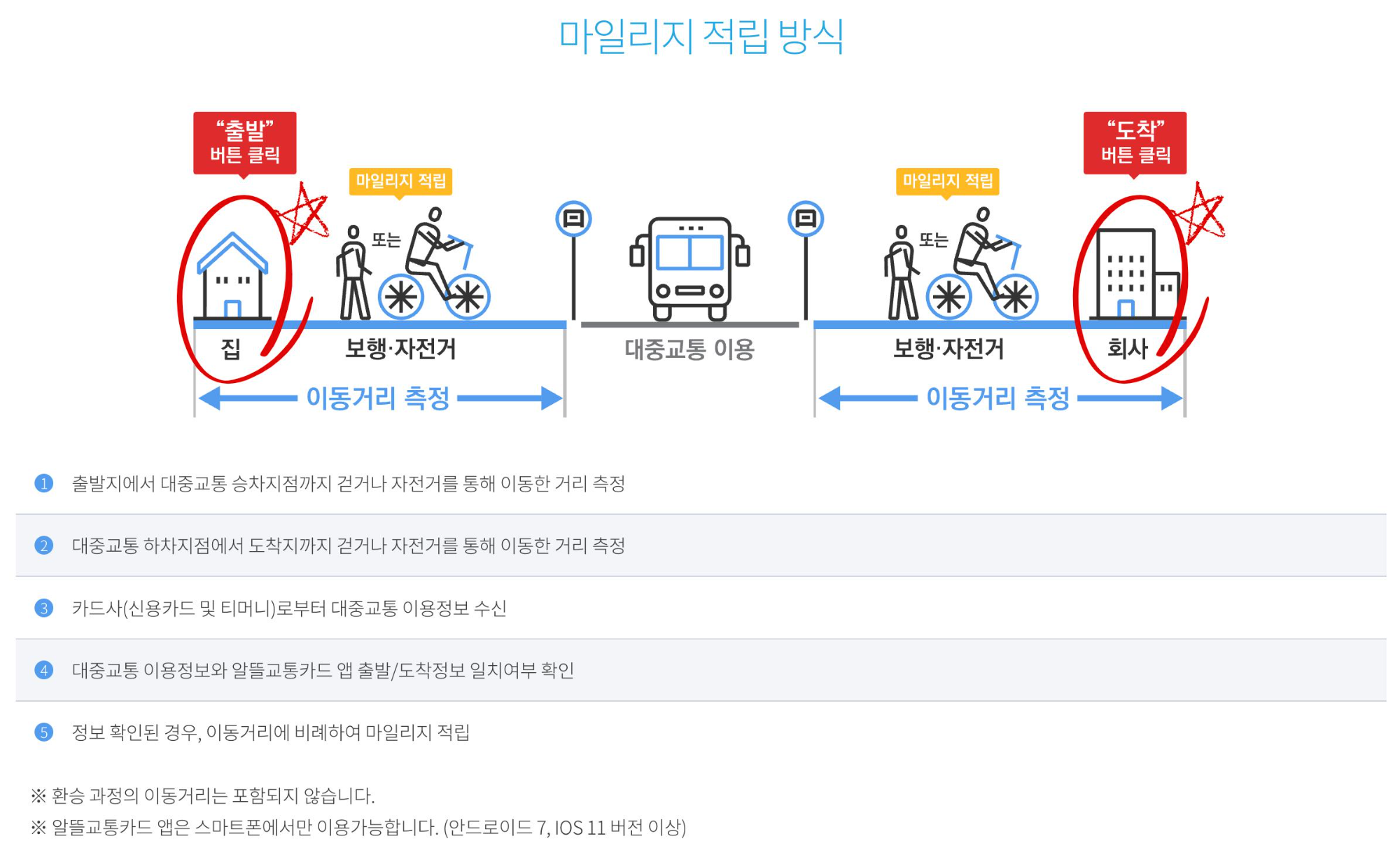 - 알뜰교통카드만 사용하고 알뜰교통카드 앱을 이용하지 않으면 마일리지가 적립 및 지급되지 않습니다.